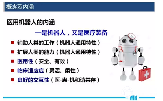 醫(yī)用機(jī)器人有一個(gè)非常寬泛的概念,可以說用于醫(yī)療領(lǐng)域的機(jī)器人或者機(jī)器人化設(shè)備都可以叫做醫(yī)用機(jī)器人。