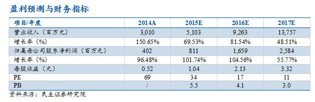 公司發(fā)布2015半年報(bào):2015年上半年?duì)I業(yè)收入22億元,同比增長(zhǎng)123%,實(shí)現(xiàn)凈利潤(rùn)4億元,同比增長(zhǎng)121%,基本每股收益0.61元。