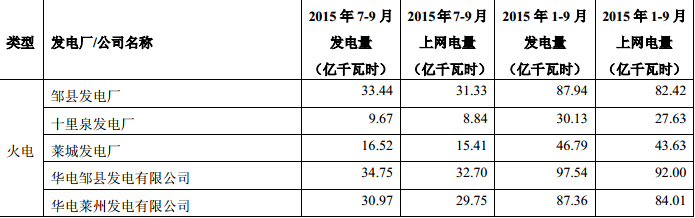 附表:2015年前三季度本集團(tuán)主要發(fā)電機(jī)組發(fā)電量及上網(wǎng)電量情況