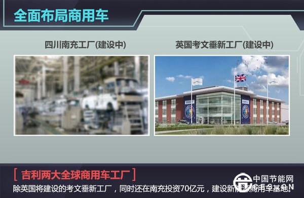 另據(jù)了解,南充項目投產(chǎn)后,每年可實現(xiàn)營業(yè)收入216億元,稅收15億元。根據(jù)吉利商用車戰(zhàn)略規(guī)劃,未來吉利南充基地全面完工后,所生產(chǎn)的新能源商用車將輻射整個東南亞市場,同時英國考文垂市的新工廠所生產(chǎn)新能源商用車,也將出口全球市場。這將作為吉利汽車的商用車海外發(fā)展戰(zhàn)略中的關(guān)鍵一步。(