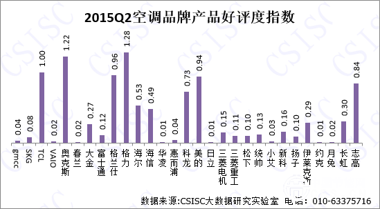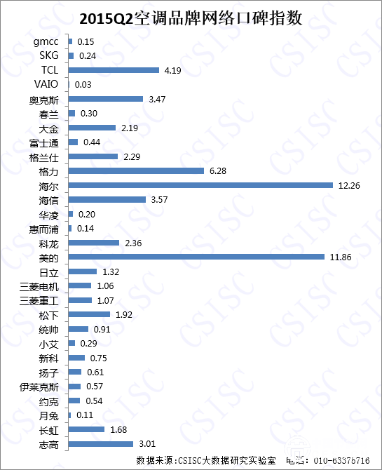 中國(guó)統(tǒng)計(jì)信息服務(wù)中心聯(lián)合新華網(wǎng)、中國(guó)質(zhì)量新聞網(wǎng)今日發(fā)布2015二季度《中國(guó)空調(diào)品牌口碑研究報(bào)告》(以下簡(jiǎn)稱《報(bào)告》)?!秷?bào)告》以市場(chǎng)表現(xiàn)比較活躍的品牌作為監(jiān)測(cè)研究對(duì)象,共監(jiān)測(cè)采集71個(gè)品牌數(shù)據(jù),從中篩選出29個(gè)各方面比較突出的空調(diào)品牌作為研究對(duì)象而產(chǎn)生的。分別是:gmcc、SKG、TCL、VAIO、奧克斯、春蘭、大金、富士通、格蘭仕、格力、海爾、海信、華凌、惠而浦、科龍、美的、日立、三菱電機(jī)、三菱重工、松下、統(tǒng)帥、小艾、新科、揚(yáng)子、伊萊克斯、約克、月兔、長(zhǎng)虹、志高(文中品牌按字母排序)。
