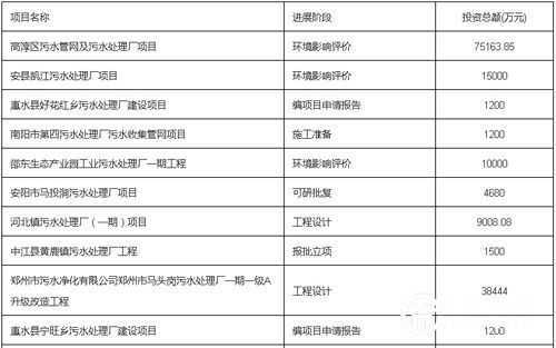 2015年10月國內(nèi)擬建和在建的污水廠項目(部分):