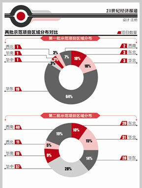 核心提示:從區(qū)域分布看,第一批示范項目覆蓋了14個省市和1個計劃單列市。其中,華東地區(qū)入圍項目最多。而第二批PPP示范項目區(qū)域格局發(fā)生了明顯變化,其
