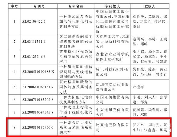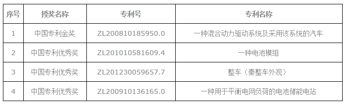 第十七屆中國(guó)專利獎(jiǎng)評(píng)審結(jié)果公示揭曉,比亞迪股份有限公司的“混合動(dòng)力專利技術(shù)”獲得中國(guó)專利金獎(jiǎng),這是汽車廠商首次在新能源領(lǐng)域獲此殊榮。此外,比亞迪還有三項(xiàng)專利獲得優(yōu)秀獎(jiǎng):秦外觀設(shè)計(jì)專利、電動(dòng)汽車電池專利技術(shù)、儲(chǔ)能系統(tǒng)專利技術(shù)。