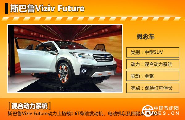 斯巴魯Viziv Future概念車(chē)?yán)^承了斯巴魯Viziv以及Viziv 2概念車(chē)的設(shè)計(jì),搭載了一套混合動(dòng)力系統(tǒng),該系統(tǒng)是由一臺(tái)1.6T柴油發(fā)動(dòng)機(jī)、電動(dòng)機(jī)以及四驅(qū)系統(tǒng)組成。值得一提的是,Viziv Future概念車(chē)進(jìn)氣格柵兩旁便是造型犀利的頭燈組;前保險(xiǎn)杠兩側(cè)還裝備有蜂窩狀霧燈,個(gè)性化十足。后保險(xiǎn)杠可以向外伸長(zhǎng),并可以攜帶兩輛自行車(chē)。