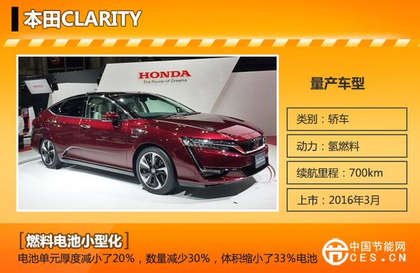 本田全新CLARITY的整體車(chē)身造型與比例延續(xù)了FCV概念車(chē)的設(shè)計(jì),相比概念車(chē)型,量產(chǎn)版的設(shè)計(jì)更加穩(wěn)重。新車(chē)采用燃料電池技術(shù),與2008年發(fā)布的FCV“FCX CLARITY”相比,其最大的不同點(diǎn)是實(shí)現(xiàn)了燃料電池單元的小型化,其厚度減小了20%,數(shù)量減少30%,體積縮小了33%,續(xù)航里程將超過(guò)700km。新車(chē)預(yù)計(jì)于2016年3月在日本上市。值得一提的是,“CLARITY”這一名稱(chēng)也是在東京車(chē)展中首次發(fā)布。