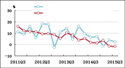 經(jīng)初步季節(jié)調整,三季度電力行業(yè)主營業(yè)務收入為1.5萬億元,同比下降1.7%,降幅比上季度擴大0.3個百分點。這主要受到兩方面因素的影響:一是電力工業(yè)品出廠價格同比降幅擴大;二是工業(yè)經(jīng)濟增長放緩,減少了用電需求。