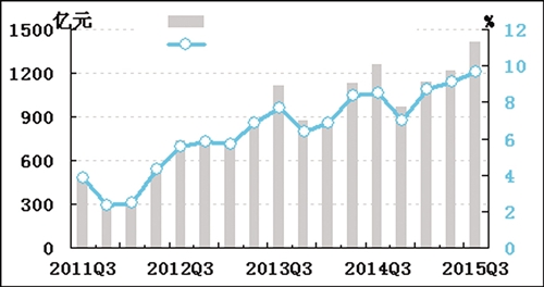 三季度,電力行業(yè)銷售利潤率為9.7%,比上季度上升0.6個百分點,比去年同期提高1.2個百分點,高于全部工業(yè)銷售利潤率5.2%的平均水平。