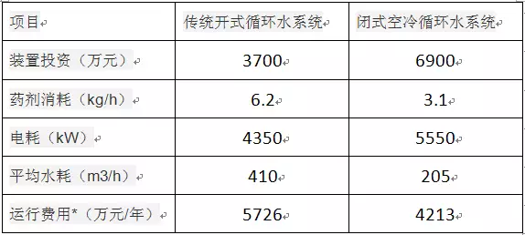 閉式空冷循環(huán)水系統(tǒng)相對(duì)傳統(tǒng)開(kāi)式循環(huán)水系統(tǒng)每年可節(jié)省運(yùn)行費(fèi)用1513萬(wàn)元,2-3年即可收回投資。