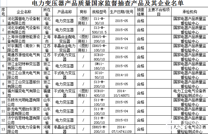 附:電力變壓器產(chǎn)品質(zhì)量國家監(jiān)督抽查產(chǎn)品及其企業(yè)名單