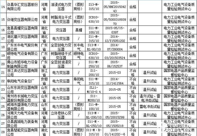 10月28日,國家質(zhì)檢總局日前公布了2015年第三季度電力變壓器質(zhì)量國家監(jiān)督抽查結(jié)果,合格率66.7%,共有10批次產(chǎn)品不符合標準的規(guī)定,主要質(zhì)量問題集中在溫升試驗和雷電沖擊試驗項目不合格。