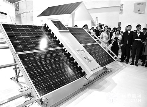 中國光伏大會暨展覽會日前在北京中國國際展覽中心(新館)舉行。以“構建光伏與社會協(xié)調(diào)發(fā)展新格局”為主題的此次大會吸引了包括光伏組件、材料及零部件、開發(fā)商、技術服務、金融互聯(lián)網(wǎng)、太陽能綠色建筑在內(nèi)的光伏全產(chǎn)業(yè)鏈企業(yè)前來參展。圖為一家企業(yè)推介其制造的光伏智能運維機器人。