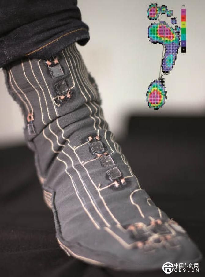 在一個針對糖尿病患者的技術(shù)演示中(見照片),有40個電容介電彈性體傳感器固定在短襪的腳底、腳跟、及腳踝處來測量腳各部位的3D壓縮分布。ASIC用來收集來自傳感器的測量數(shù)據(jù),并將數(shù)據(jù)無線傳送到電話或平板電腦,來提醒患者改變姿勢或重量分布。