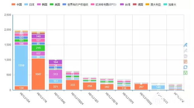通過檢索薄膜太陽(yáng)能電池全球技術(shù)構(gòu)成可以發(fā)現(xiàn),中國(guó)和日本的技術(shù)重點(diǎn)完全不同。中國(guó)企業(yè)側(cè)重于薄膜太陽(yáng)能電池的生產(chǎn),而日本企業(yè)則更多的側(cè)重薄膜太陽(yáng)能電池設(shè)備的生產(chǎn)。