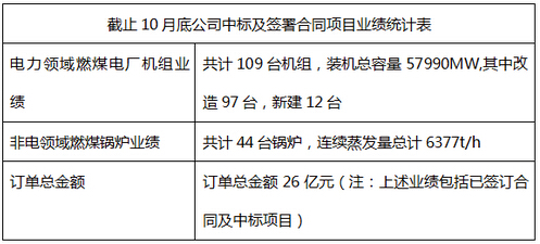 清新環(huán)境發(fā)布截止10月底公司中標(biāo)及簽署合同項目業(yè)績統(tǒng)計表,其中電力領(lǐng)域燃煤電廠機(jī)組業(yè)績共計109臺機(jī)組,非電領(lǐng)域燃煤鍋爐業(yè)績共計44臺鍋爐,詳情如下: