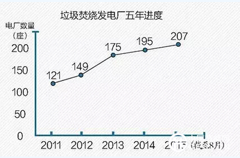 據(jù)2011年到2015年的統(tǒng)計(jì)顯示,在我國三種垃圾處理方式中,垃圾填埋和垃圾堆肥的比例均在逐年下降,而垃圾焚燒比例卻是在逐年攀升,預(yù)計(jì)很快將成為城市生活垃圾處理的絕對主要方式。