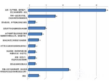 詢問為何未采取節(jié)能節(jié)電行動的結(jié)果如圖4?;卮?ldquo;業(yè)務(wù)(生產(chǎn)制造、接待客戶、員工勞務(wù)管理等)優(yōu)先”的占壓倒性多數(shù)。由此可見,意識雖然有所提高,但在現(xiàn)實的繁忙的業(yè)務(wù)中很難付諸實際行動。