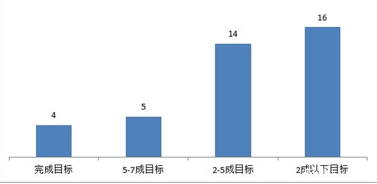 從推廣目標完成率來看,除去4城市完成外,有5個城市(江蘇、廣東、廣州、臨沂、北京)完成率達50%以上,14個城市完成推廣目標的20-50%,16個城市僅完推廣目標的20-50%,16個城市僅完成推廣目標的20%以下。