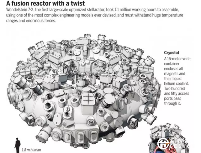 去年,經(jīng)過(guò)110萬(wàn)施工小時(shí),該所完成了世界上最大的稱為仿星器的核聚變機(jī)器。