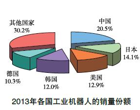 圍繞機(jī)器人產(chǎn)業(yè)展開的高端制造業(yè),可能成為美歐等發(fā)達(dá)國家和中國等新興經(jīng)濟(jì)體之間競相爭奪的新領(lǐng)域。2010 年,我國制造業(yè)產(chǎn)出占世界的比重為19.8%,超過美國成為全球制造業(yè)第一大國。但總體來看,在全球新一輪科技革命興起和國內(nèi)資源環(huán)境壓力增大的特定背景下,我國傳統(tǒng)工業(yè)模式不可持續(xù)的矛盾日益凸顯,而主要發(fā)達(dá)國家試圖奪回制造業(yè)優(yōu)勢的勢頭非常明顯。奧巴馬政府明確提出要通過發(fā)展機(jī)器人產(chǎn)業(yè)等高端制造業(yè)讓美國經(jīng)濟(jì)“基業(yè)長青”。2013 年,歐盟明確提出歐洲須進(jìn)行“再工業(yè)化”以重振歐洲經(jīng)濟(jì),并將工業(yè)占?xì)W盟GDP的比重由15.6% 提升至2020 年20% 的總體目標(biāo),其中機(jī)器人產(chǎn)業(yè)是發(fā)展的重點。