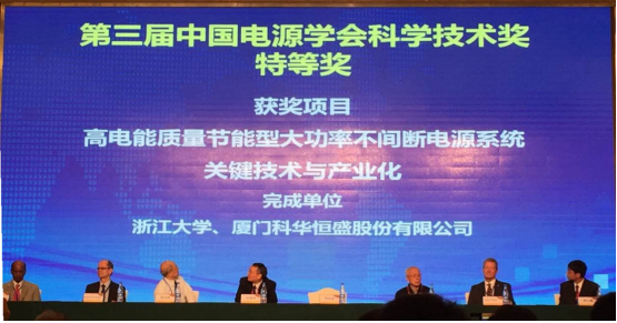 中國電源學會科學技術獎,是由國家科技部批準設立,代表我國電源行業(yè)最高水平,在全國范圍內進行評選的科技獎勵,由中國電源學會組織評審并頒發(fā)。其中,技術進步獎是授予國內外首創(chuàng)的重大技術發(fā)明,技術思路獨特,技術上有重大創(chuàng)新,技術指標達到國際領先水平,推動電源及相關領域的技術進步,并已產生顯著的經濟效益或者社會效益的個人或組織。同時,通過本次特等獎的獲獎項目將擇優(yōu)推薦參評下一年度“國家科學技術獎”。科華恒盛電源產品以其自主獨特的技術思路和重大技術創(chuàng)新核心,凝聚了高效節(jié)能、智能管理、安全可靠、擴容能力強、管理專業(yè)化等多項優(yōu)異性能。