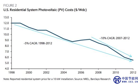 亞利桑那州就如此,該州電廠耗資300余萬美元用于但對太陽能的采用。巴克萊稱:“盡管他們會延緩太陽能的使用,電廠獲得的僅是短暫的安心。隨著太陽能系統(tǒng)安裝費用每年下降約10%,我們預計安裝的速度將在2014年底前復蘇。盡管我們需要更多月份的數(shù)據(jù)以證實這一判斷,這有望成為技術(shù)/成本曲線如何快速的超越監(jiān)管應對措施的案例。