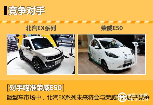 目前在微型純電動車市場,榮威E50是比較具有代表性的車型。待北汽新能源EX上市后,將會與后者展開直接競爭。擁有個性化定制服務(wù)的北汽EX系列將會滿足不同消費者需求,目前從新車的續(xù)航里程以及專屬項目來看,未來北汽EX系列將會擁有較強的產(chǎn)品競爭力。