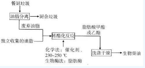 生物柴油是指以動植物油脂為原料,通過酯交換生產(chǎn)的柴油,也稱之為再生燃油。地溝油通過酸、堿兩步法、分離反應法、完全催化法等工藝制得生物油。