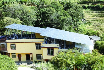 堂堡鄉(xiāng)磜下村光伏太陽能發(fā)電板建于村部樓頂。