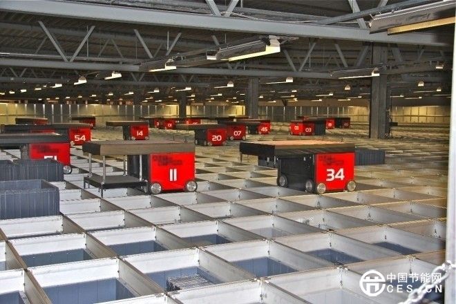 亞馬遜倉庫內(nèi)Kiva機(jī)器人正在工作