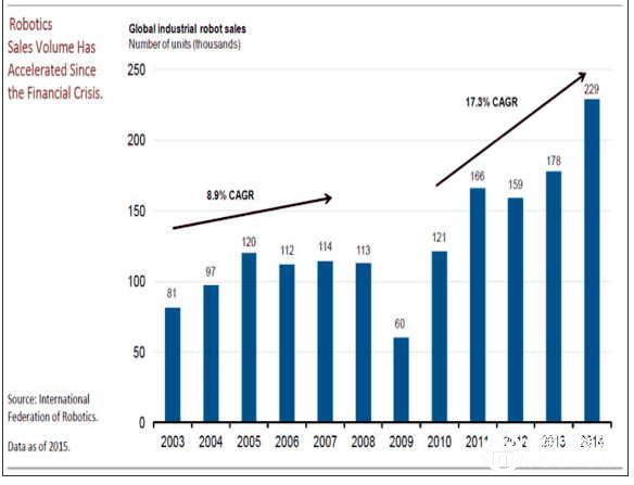 美銀美林近日發(fā)布了一份長達300頁的關(guān)于“機器人革命”的研究報告。報告強調(diào)了在呈指數(shù)增長的機器人產(chǎn)業(yè)里,人工智能正改變工作的性質(zhì)。