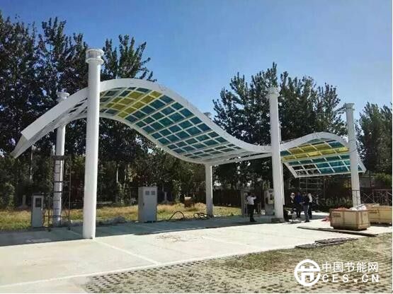 安裝了漢能BIPV組件的國家電網(wǎng)華商三優(yōu)的充電車棚,每年發(fā)電量約1.5萬度