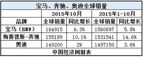 10月,BBA三家銷量增速相比上月均有所放緩。寶馬依靠最小降幅,分別以9726輛及15715輛的優(yōu)勢超越奔馳、奧迪,將全球高檔車單月銷冠從奔馳手中再次奪回。
