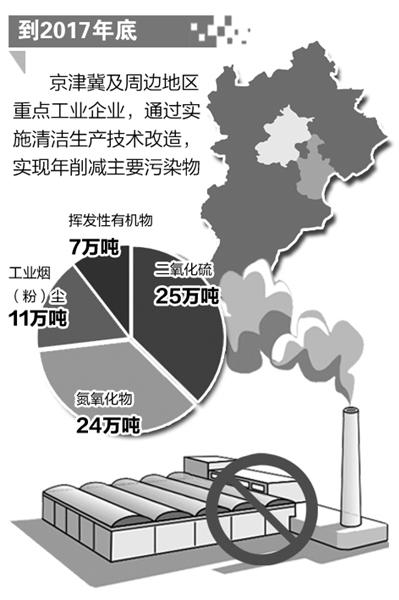 工業(yè)和信息化部日前印發(fā)《京津冀及周邊地區(qū)重點(diǎn)工業(yè)企業(yè)清潔生產(chǎn)水平提升計(jì)劃》,提出到2017年底,京津冀及周邊地區(qū)重點(diǎn)工業(yè)企業(yè),通過(guò)實(shí)施清潔生產(chǎn)技術(shù)改造,實(shí)現(xiàn)年削減主要污染物二氧化硫25萬(wàn)噸、氮氧化物24萬(wàn)噸、工業(yè)煙(粉)塵11萬(wàn)噸、揮發(fā)性有機(jī)物7萬(wàn)噸,共計(jì)67萬(wàn)噸。