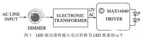 電子式變壓器具有其自身的設(shè)計(jì)注意事項(xiàng):要求負(fù)載為電阻性,但LED燈不是電阻負(fù)載,因此,需要改變負(fù)載特性,防止電子變壓器關(guān)斷。LED燈設(shè)計(jì)中的一項(xiàng)最大障礙就是需要開發(fā)無閃爍調(diào)光并兼容電子變壓器的照明燈。電子變壓器遠(yuǎn)小于傳統(tǒng)磁性變壓器,當(dāng)LED燈所需的電流較低時(shí),是一項(xiàng)艱巨的設(shè)計(jì)問題。較低的LED電流造成大多數(shù)LED燈不能與電子式變壓器配合工作,調(diào)光器會(huì)進(jìn)一步減小電流,加劇了這一困難。Maxim的MAX16840LED驅(qū)動(dòng)器采用擁有專利的固定頻率、平均電流模式控制方法解決了這一問題,并且兼容絕大多數(shù)電子變壓器和后沿調(diào)光器。