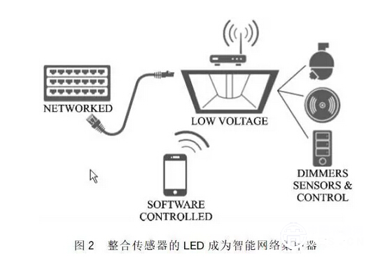 LED很容易配合傳感器、無線通信模塊以及嵌入式處理器進(jìn)行工作,這種特性允許LED燈具變?yōu)橹悄芫W(wǎng)絡(luò)傳感器集中器,利用隔離的本地嵌入式處理器,照明系統(tǒng)可實(shí)現(xiàn)節(jié)能。將智能LED燈/傳感器集中器連接至局域網(wǎng)(LAN),允許已安裝的LED集中器快速支持并充分利用IoT(物聯(lián)網(wǎng))上涌現(xiàn)出的新功能,無需更換昂貴的照明燈,即可提供適應(yīng)未來發(fā)展的技術(shù)(如圖2所示)。PoE非常適合于通過LAN供電、連接和控制智能LED集中器,降低了兼容IP設(shè)備的部署和安裝成本,包括LED燈和傳感器集中器。由于只需要布設(shè)一根數(shù)據(jù)電纜,所以布線成本較低,而且無需獨(dú)立的電源電纜。由于數(shù)據(jù)網(wǎng)絡(luò)布線無需雇傭有執(zhí)照、有資質(zhì)的電工,所以安裝成本較低。由于既能夠通過所連設(shè)備的電源實(shí)現(xiàn)離散控制,又能夠在斷電期間僅使用網(wǎng)絡(luò)連接提供電源備份,所以PoE網(wǎng)絡(luò)可以支持更好的總體網(wǎng)絡(luò)電源管理。
