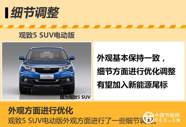 據(jù)了解,觀致5 SUV電動版外觀方面基本現(xiàn)款車型,但新車會在細節(jié)方面處理較多?,F(xiàn)款觀致5 SUV前臉延續(xù)觀致3都市SUV家族化設(shè)計,整體造型更具層次感,前大燈造型較為犀利,燈內(nèi)還設(shè)計有LED日間行車燈,最大程度上提升了日間行駛的安全性。而區(qū)別于汽油版觀致5 SUV,電動版新車有望在尾部加入標識。同時據(jù)介紹,明年一月發(fā)布的新車的整體造型不是最終版,量產(chǎn)時還將進一步提升整體感覺。