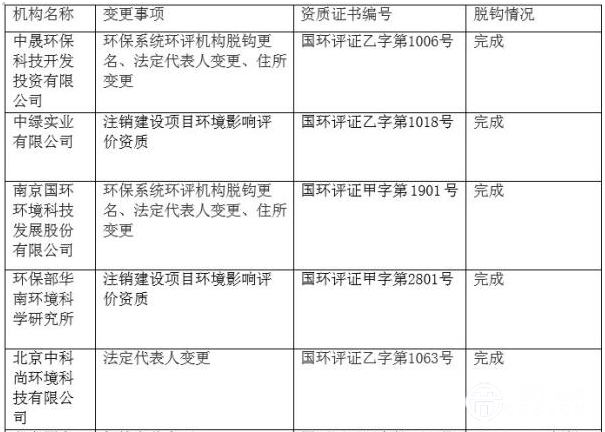 記者發(fā)現(xiàn),三天前,環(huán)保部環(huán)境影響評價司還公示了另一家部屬“紅頂”環(huán)評機構(gòu)——北京中環(huán)博宏環(huán)境資源科技有限公司(國環(huán)評證甲字第1001號)的脫鉤申請。