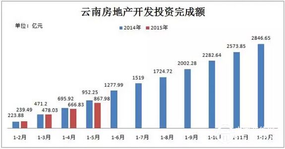 圖:2015年1-5月份云南省房地產(chǎn)開發(fā)投資完成額情況