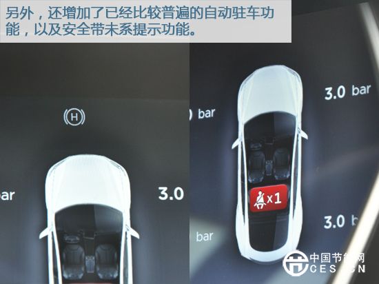 另外,還增加了已經(jīng)比較普遍的自動(dòng)駐車功能,以及安全帶未系提示功能。