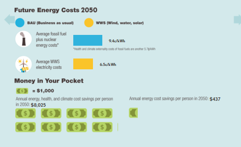 同時(shí),可再生能源的發(fā)展不僅可以大大降低成本,還可以減少死亡率。預(yù)計(jì)到2050年,死于空氣污染的人數(shù)將降至1514人,每人每年節(jié)省能源、健康和氣候成本8025美元,其中包括節(jié)省437美元電力成本。