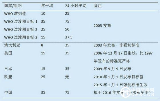 【世界衛(wèi)生組織(WHO)和一些國家的PM2.5標準(單位:微克/立方米)】