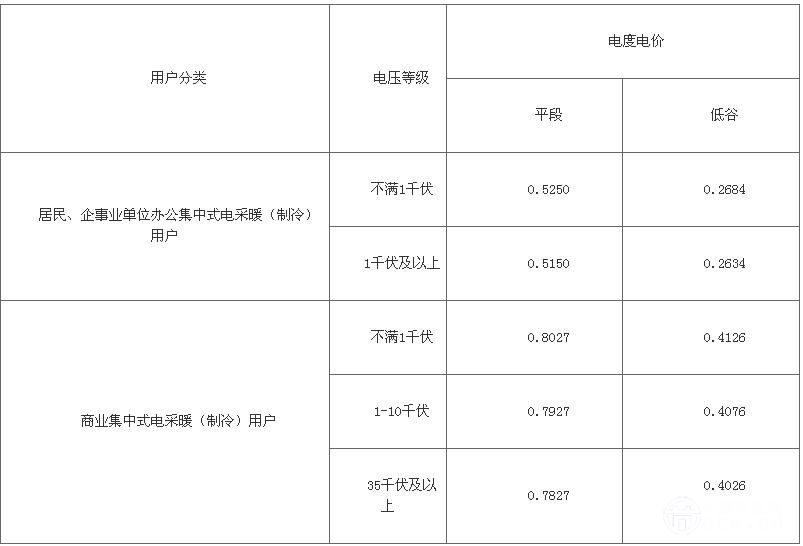 省內(nèi)集中式電采暖(制冷)用電區(qū)分用戶類別實(shí)行平、谷時段分時電價。具體電價標(biāo)準(zhǔn)詳見附件。