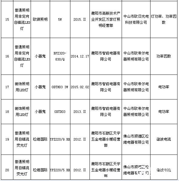 23日,湖南省工商行政管理局在其官網(wǎng)發(fā)布的《2015年三季度流通領(lǐng)域商品質(zhì)量抽查檢驗(yàn)通報(bào)》顯示,20組節(jié)能燈樣品不合格。