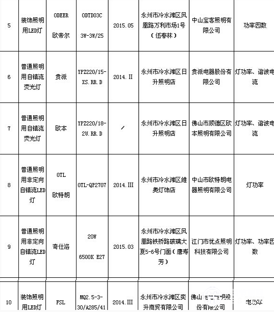 不合格商品存在的主要問(wèn)題是燈功率、電功率、諧波電流達(dá)不到標(biāo)準(zhǔn)要求。