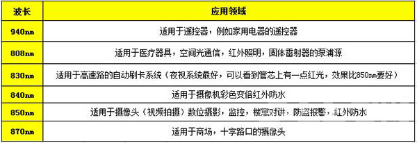 紅外LED應(yīng)用領(lǐng)域波段范圍