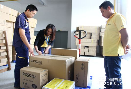 品上照明工作人員清點、打包贈送的燈具產(chǎn)品