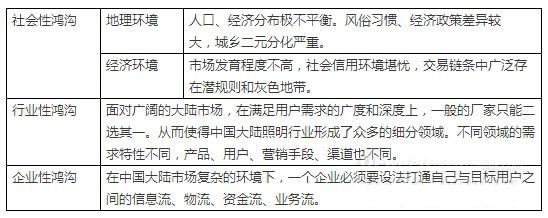 20世紀90年代的中后期,房地產大潮和國家基礎建設大潮興起,照明產品需求也順理成章地出現爆發(fā)性增長,讓許多的照明企業(yè)受惠盈利,也極大地加劇了行業(yè)之間的競爭,同時更讓原來的產品競爭逐步轉向渠道競爭和品牌競爭。他指出,也就是這個時候,行業(yè)性鴻溝和企業(yè)性鴻溝得到顯現。在如此龐大而復雜的市場下,企業(yè)開始思考如何立足于自身定位,更加低費高效地與用戶完成對接。一些優(yōu)秀的企業(yè)通過對渠道和品牌的建設,跨越了用戶之間的鴻溝,并且有意識地主動推高這道門檻,為競爭對手的跨越設置障礙。