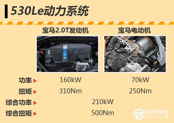 華晨寶馬530Le的動(dòng)力系統(tǒng)由兩部分組成,汽油機(jī)采用代號(hào)為N20B20的2.0T渦輪增壓發(fā)動(dòng)機(jī),可輸出160kW的最大功率,與現(xiàn)款525Li調(diào)校水平完全相同;電動(dòng)機(jī)則配備一部70kW的永磁電機(jī),純電動(dòng)模式下可行駛58公里,最高車速達(dá)120km/h。此外,傳動(dòng)方面新車匹配一臺(tái)8速手自一體變速箱。