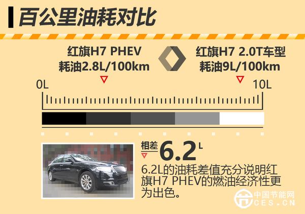 此次紅旗H7 PHEV采用混合雙動(dòng)力模式,意味著油耗將會(huì)大幅下降。數(shù)據(jù)顯示,紅旗H7 PHEV綜合百公里油耗下探到2.8L,而紅旗H7 2.0T車型綜合百公里油耗為9L。6.2L的油耗差值充分說明這套動(dòng)力系統(tǒng)的先進(jìn)性,同時(shí)也提前滿足了國(guó)家制定到2020年油耗控制在5L/100km以內(nèi)的平均標(biāo)準(zhǔn)。